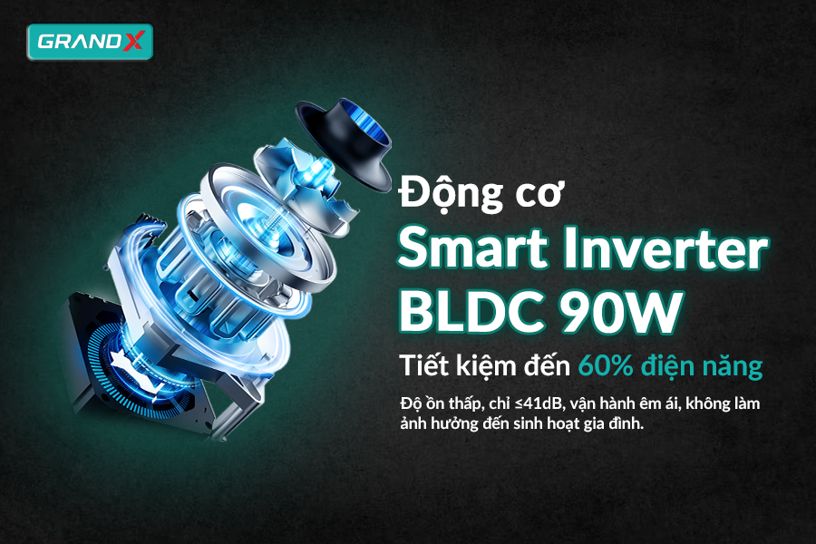 Động cơ Smart Inverter BLDC 90W: Vận hành êm ái, bền bỉ, tiết kiệm đến 60% điện năng tiêu thụ.