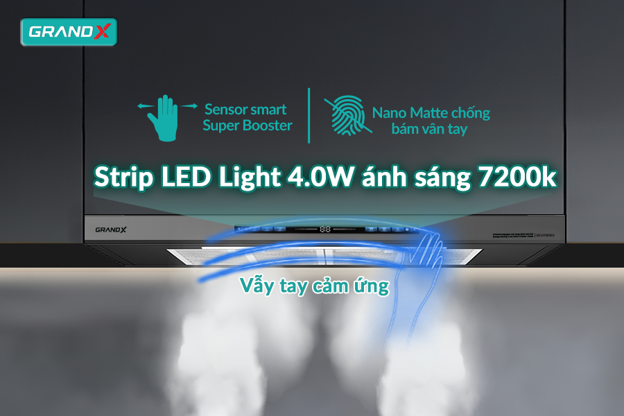 Ngoài ra, chế độ Super Booster giúp tăng tốc độ hút tối đa khi cần – cực kỳ hữu ích khi chiên rán nhiều dầu mỡ hoặc nấu nướng cùng lúc nhiều món. Kết hợp cùng cảm biến thông minh, hút mùi GX H70F85G mang đến trải nghiệm nấu nướng tiện nghi, không lo mùi ám lại trên quần áo hay đồ nội thất trong nhà.