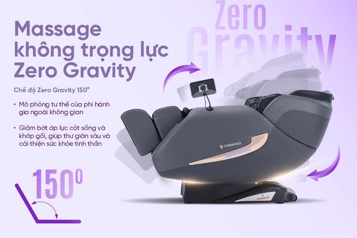 Chế độ Zero Gravity 154° đưa cơ thể về tư thế ngả sâu, giúp giảm áp lực lên các đĩa đệm và khớp xương, mở rộng dung tích phổi, hỗ trợ tuần hoàn và giảm đau mỏi nhanh chóng. Chức năng này đặc biệt phù hợp với người làm việc văn phòng, người cao tuổi, đem đến cảm giác thư giãn và vô cùng dễ chịu khi sử dụng.