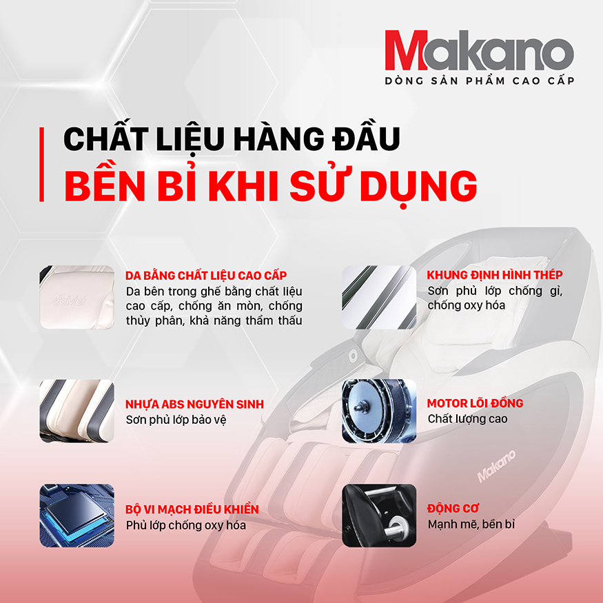 Chất liệu sản phẩm | - Da bằng chất liệu PU cao cấp - Khung định hình bằng thép không gỉ 2 lớp, phủ lớp chống oxy hóa. - Bộ vi mạnh điều khiển phủ lớp chống oxy hóa - Motor lõi đồng chất lượng cao... |