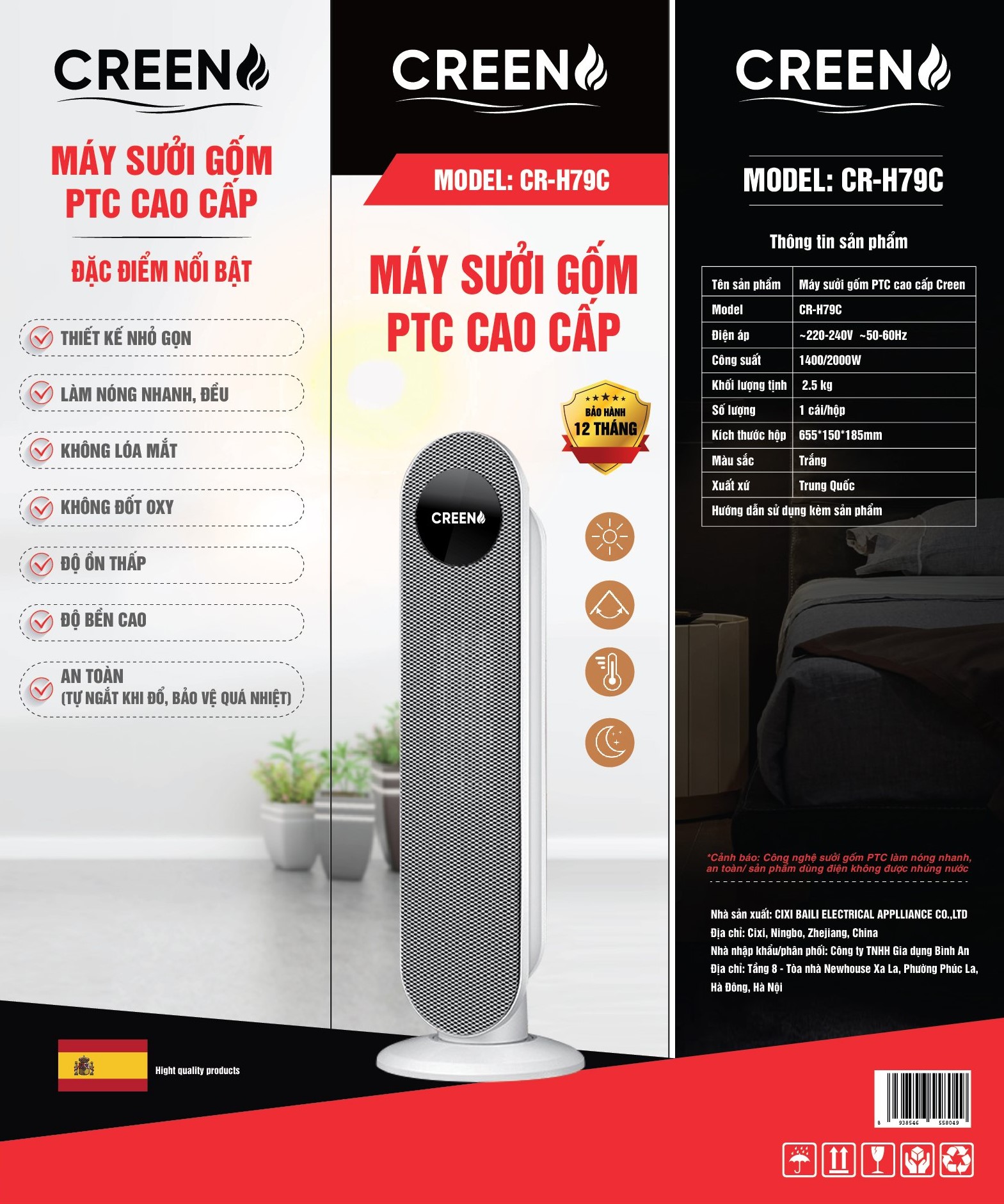 Máy sưởi gốm cao cấp CREEN CR-H79C là dòng sưởi ấm vượt trội với các tinh năng đặc biệt sau