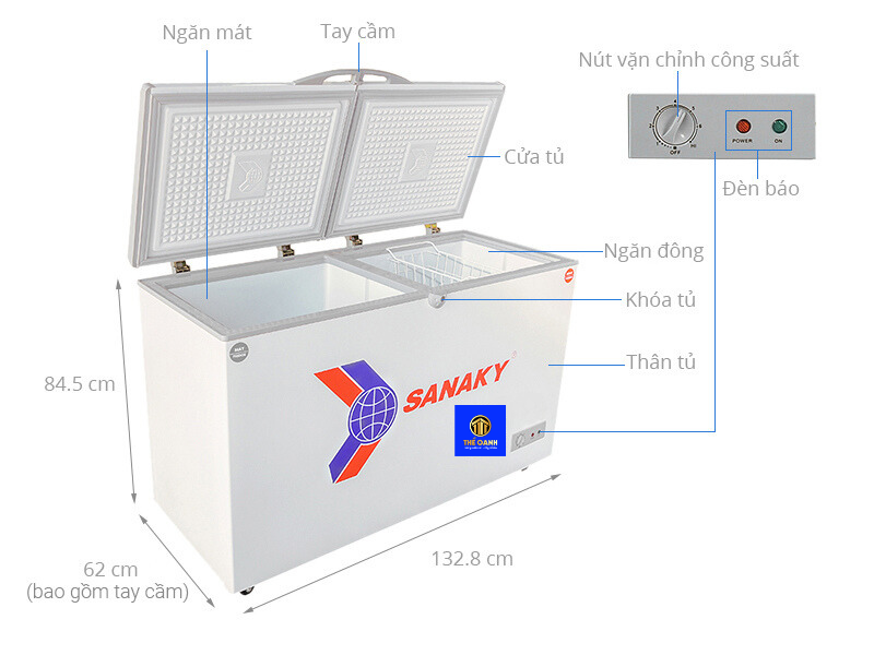 Tủ có dung tích là 280 lít và được chia làm 2 ngăn đông 110 lít và ngăn mát 170 lít riêng biệt, có dán nhãn chỉ dẫn tiện quan sát, tủ đông Sanaky cho phép bạn dễ dàng phân loại thực phẩm để bảo quản.