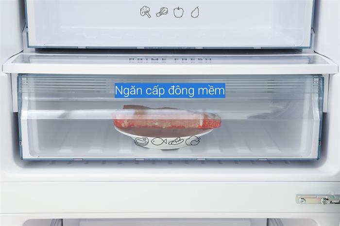 - Ngăn Prime Fresh giữ nhiệt độ khoảng -3°C, giúp thực phẩm tươi sống không bị đông cứng, dễ chế biến ngay khi cần. Bảo quản thực phẩm trọn vị và giảm thiểu hao hụt dinh dưỡng.