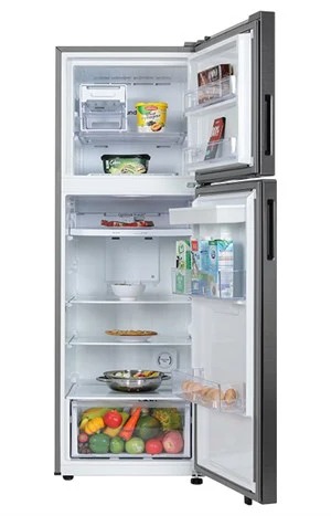 - Phần ngăn lạnh có dung tích 265 lít có các khay kệ để phân chia tầng dễ đặt để thực phẩm. Ngoài ra, có ngăn rau củ có khả năng giữ ẩm tốt nhờ đó có thể bảo quản rau củ và trái cây luôn tươi ngon.