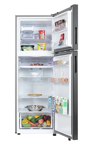 - Ngăn lạnh có dung tích 268 lít, gồm có ngăn đông mềm, kệ chia làm nhiều ngăn, hộp đựng rau củ quả và khay chứa (nằm ở cánh cửa tủ).