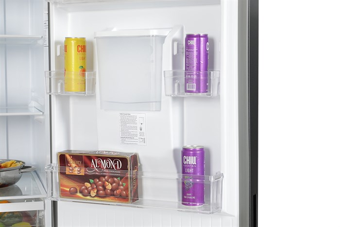 - Khay kệ thiết kế linh hoạt cho người dùng dễ dàng thay đổi theo nhu cầu, khay chứa ở cạnh cửa được làm với độ cao lý tưởng giúp giữ chai lọ của bạn vững vàng, tránh rơi vỡ.