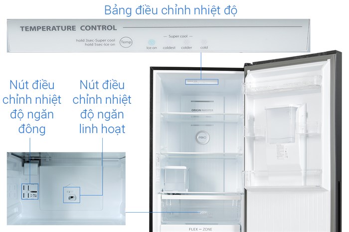 - Ngăn cấp đông mềm Flex-zone -1°C: bảo quản được thịt, cá trong 3 đến 4 ngày mà không cần rã đông, chế biến tiện lợi trong khi vẫn giúp giữ được nguyên hương vị. Ngăn chứa này còn giúp làm lạnh thức uống nhanh chóng, thiết kế có thể đổi vị trí tùy thích.
