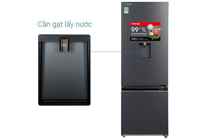 Điểm nổi bật đầu tiên khi nhìn vào chiếc tủ lạnh này là khay lấy nước tự động nằm ở bên ngoài cửa tủ, chỉ cần vài thao tác đơn giản là bạn đã có ngay ly nước mát lạnh tức thì. Hộp chứa nước được làm từ nhựa an toàn, không chứa BPA, đảm bảo an toàn cho sức khỏe.