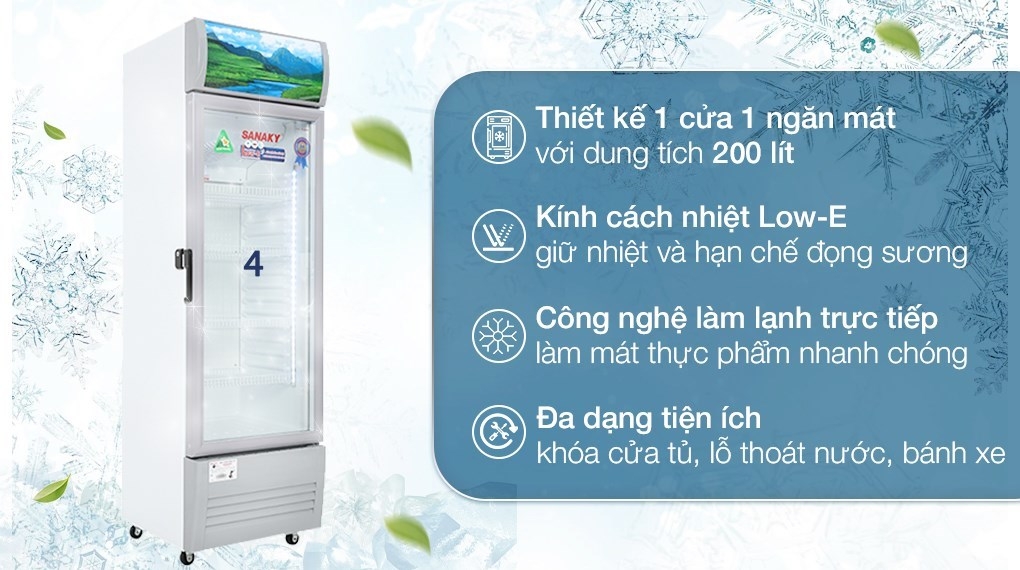 Nhìn chung, tủ mát Sanaky này có thiết kế nhỏ gọn với khả năng tiết kiệm điện, giữ nhiệt tốt, làm lạnh sâu, hạn chế đọng sương trên cánh cửa tủ, tích hợp khóa an toàn bảo vệ thực phẩm bên trong, dung tích sử dụng 200 lít phù hợp cho các hàng quán nhỏ hay cửa hàng tiện lợi dùng để trưng bày thực phẩm, đồ uống.