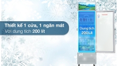 - Dung tích sử dụng ngăn mát: 200 lít, khả năng làm mát từ 0°C ~ 10°C.