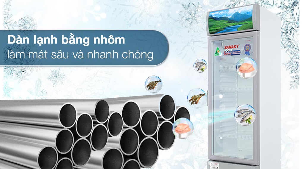 - Chất liệu dàn lạnh từ nhôm cho hiệu suất dẫn khí tốt giúp các ngăn tủ được giữ lạnh trong một khoảng thời gian dài. Nhờ vậy, thực phẩm được bảo quản lâu dài mà vẫn tươi ngon.